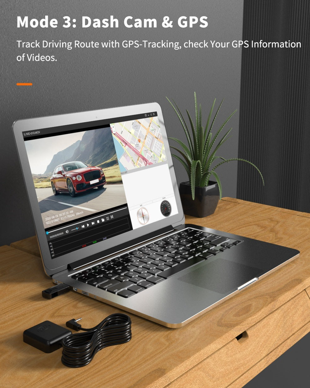 This dual dash cam system features a 3” IPS screen with Full HD 1080P front and 720P waterproof rear cameras, capturing clear footage of both front and rear views simultaneously. Equipped with a built-in G-sensor, it automatically locks video files during sudden impacts to prevent overwriting, providing crucial evidence in accidents. The 170° wide-angle lens combined with F1.8 aperture and WDR/HDR technology delivers sharp images even in low light. Additional functions include parking monitoring, loop recording, and motion detection. Installation is straightforward with both a 3M adhesive and suction mount included.